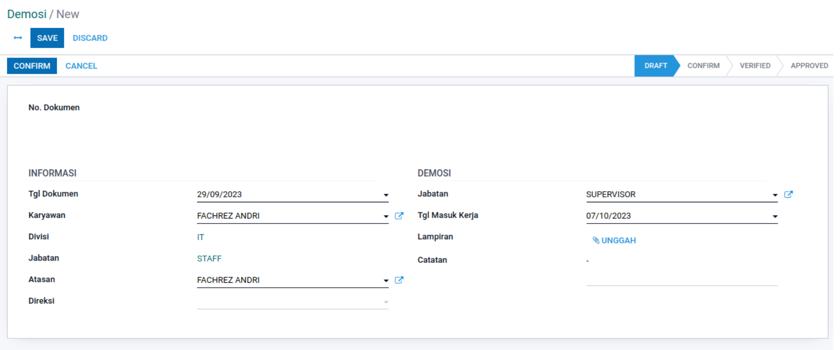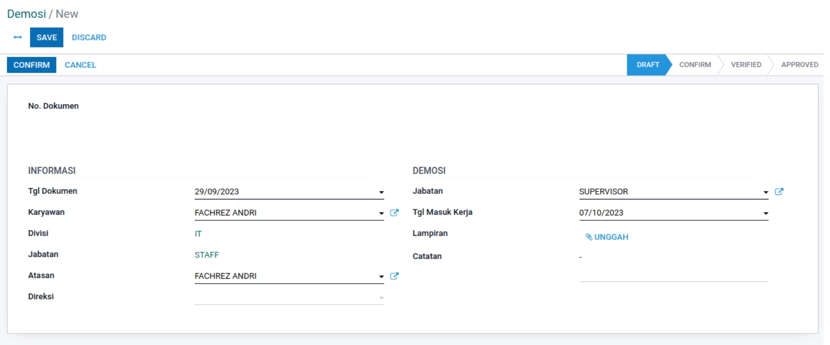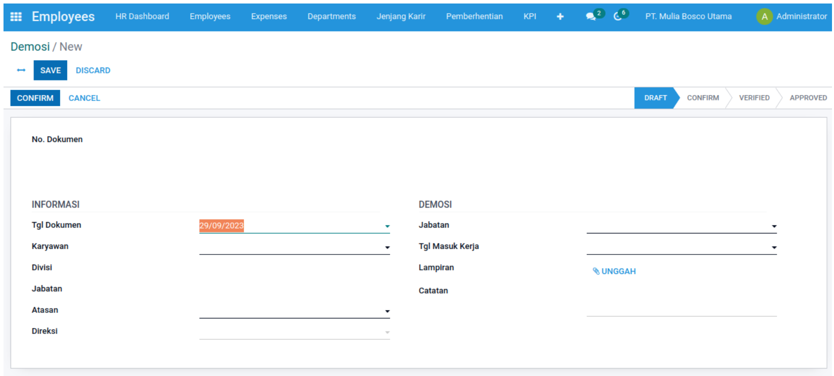 Setelah “Demosi’ di klik, maka akan muncul tampilan seperti dibawah ini,