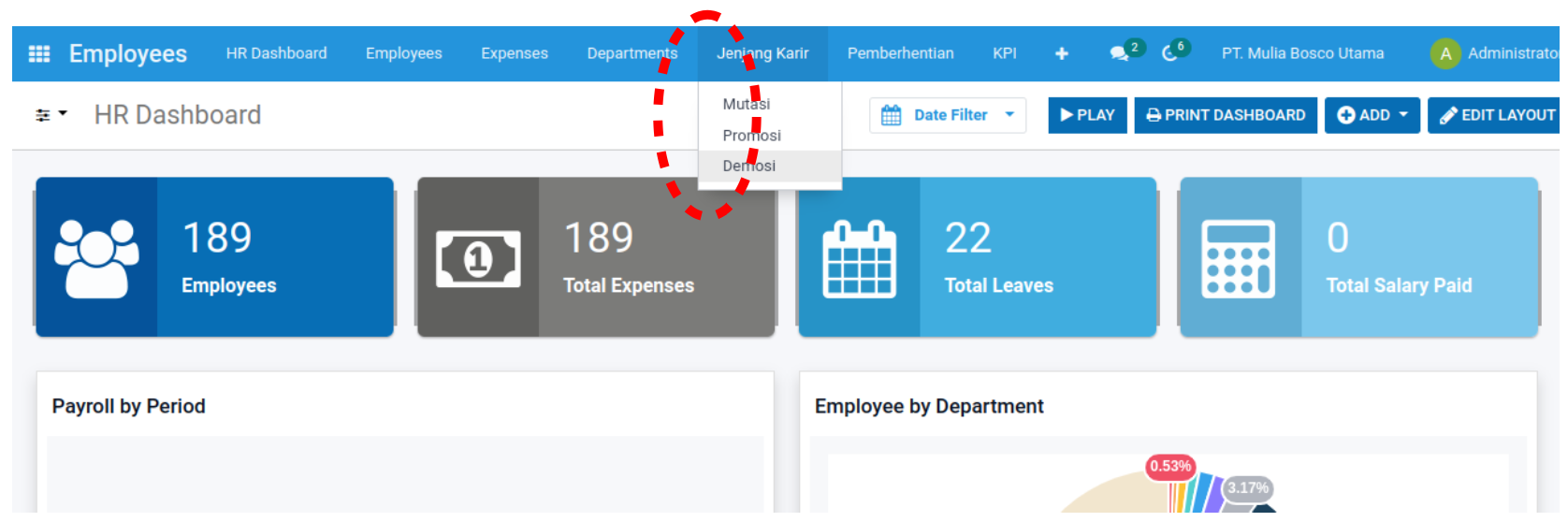 Setelah “Jenjang Karir” diklik, maka akan muncul 3 pilihan yaitu, mutasi, promosi, dan demosi.