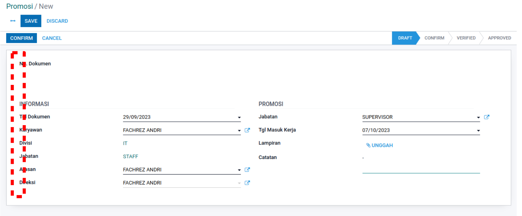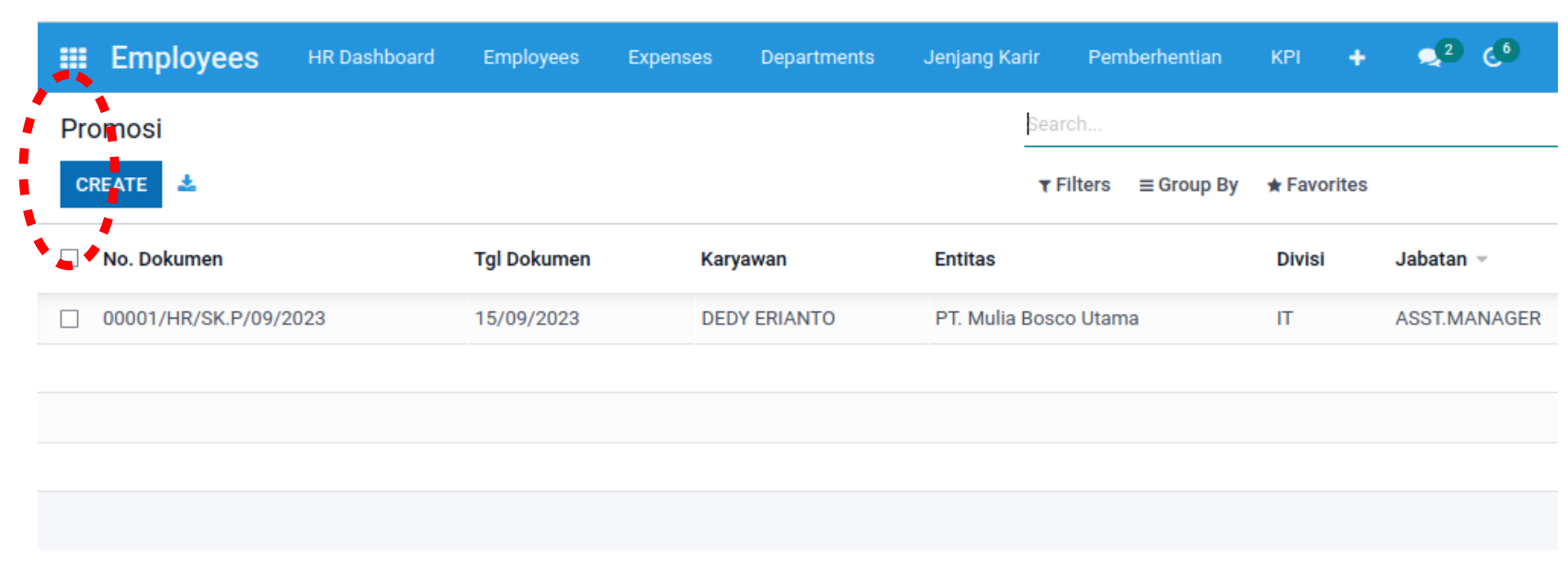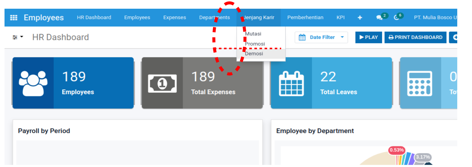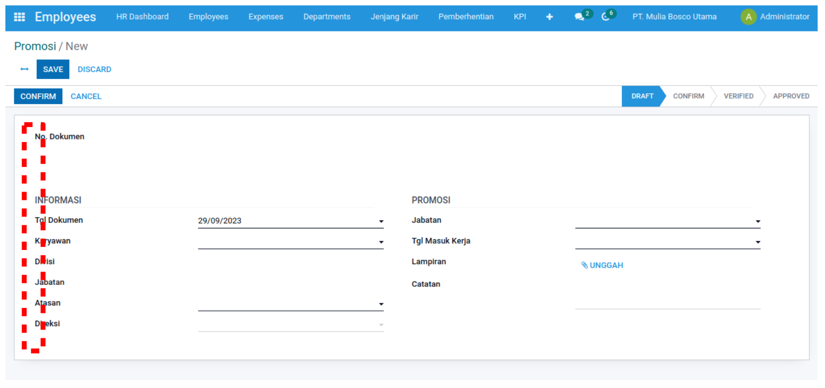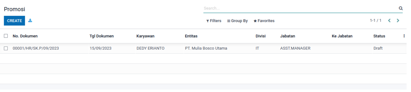 Pilihan “Promosi” terdapat pada pilihan ke-2 dibawah “Mutasi”.