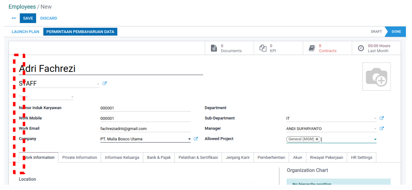 Selanjutnya user dapat mengisi data sesuai dengan kebutuhan secara lengkap. berikut adalah contohnya,